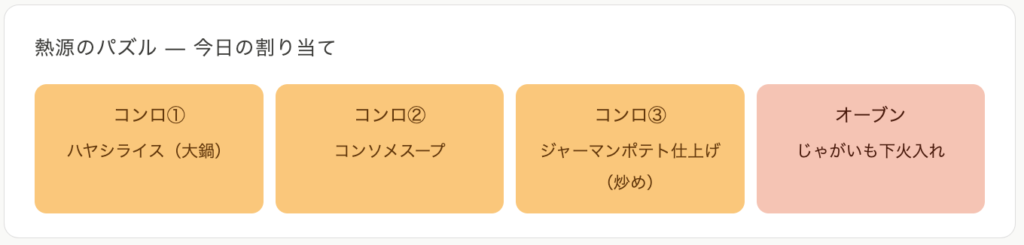はじめまして。毎日70人分の食事をつくっているらんぷです。このブログでは、大量調理の現場で培ったリアルな段取り術と、家庭でもすぐ使えるアイデアをお届けします。第1回は、コンロが足りない中でランチを仕上げた「熱源パズル」の日。どうぞ最後まで読んでいってください。